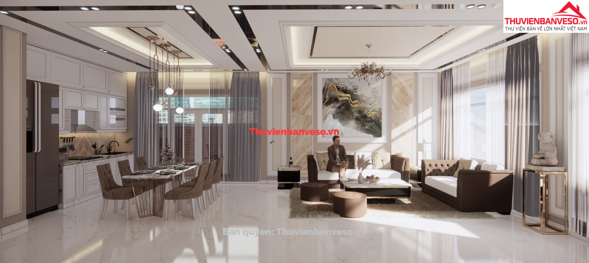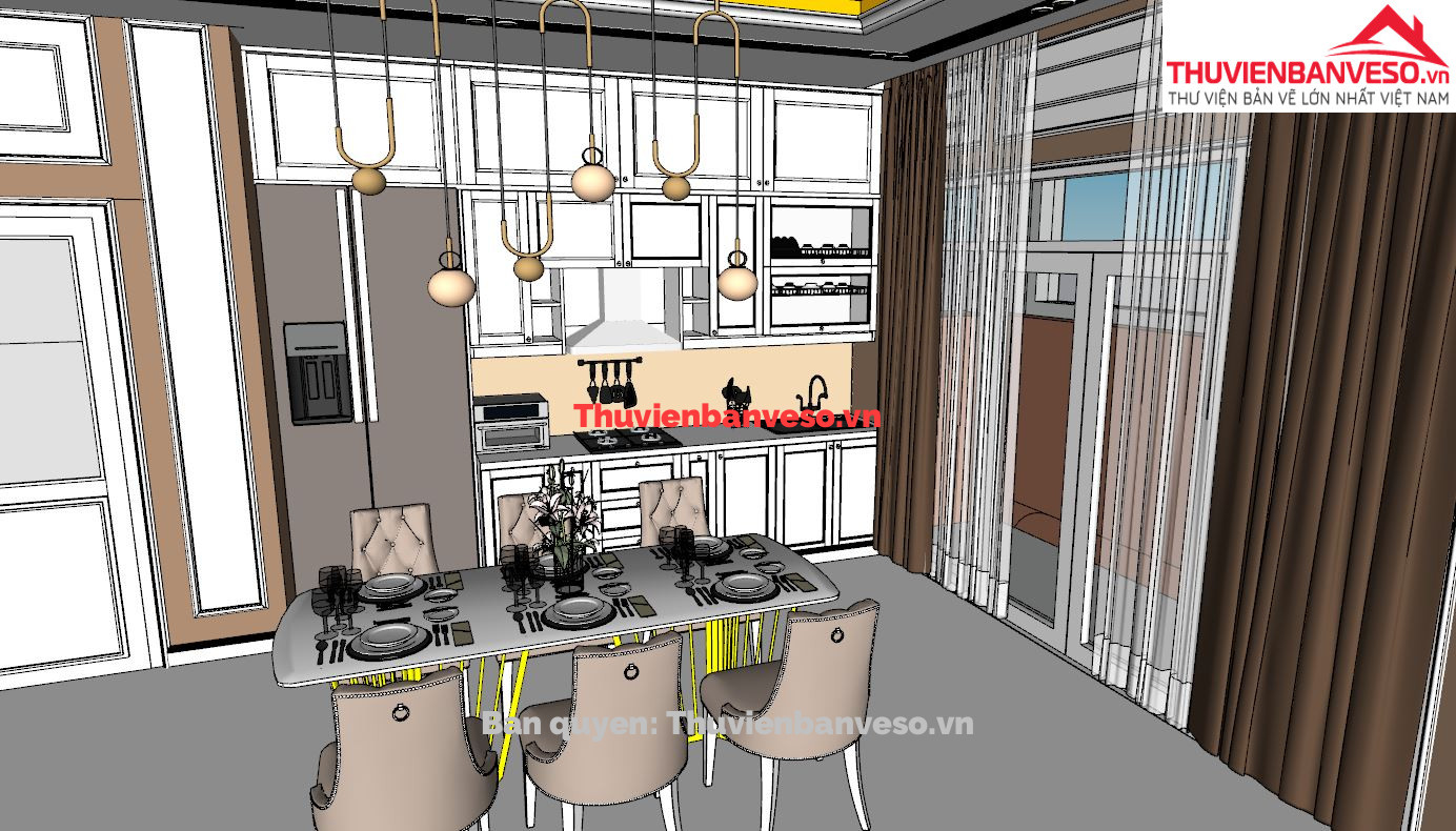 trong file gồm bản Cad triển khai chi tiết kiến trúc, điện nước..., file ketchup ngoại thất, nội thất bếp khách