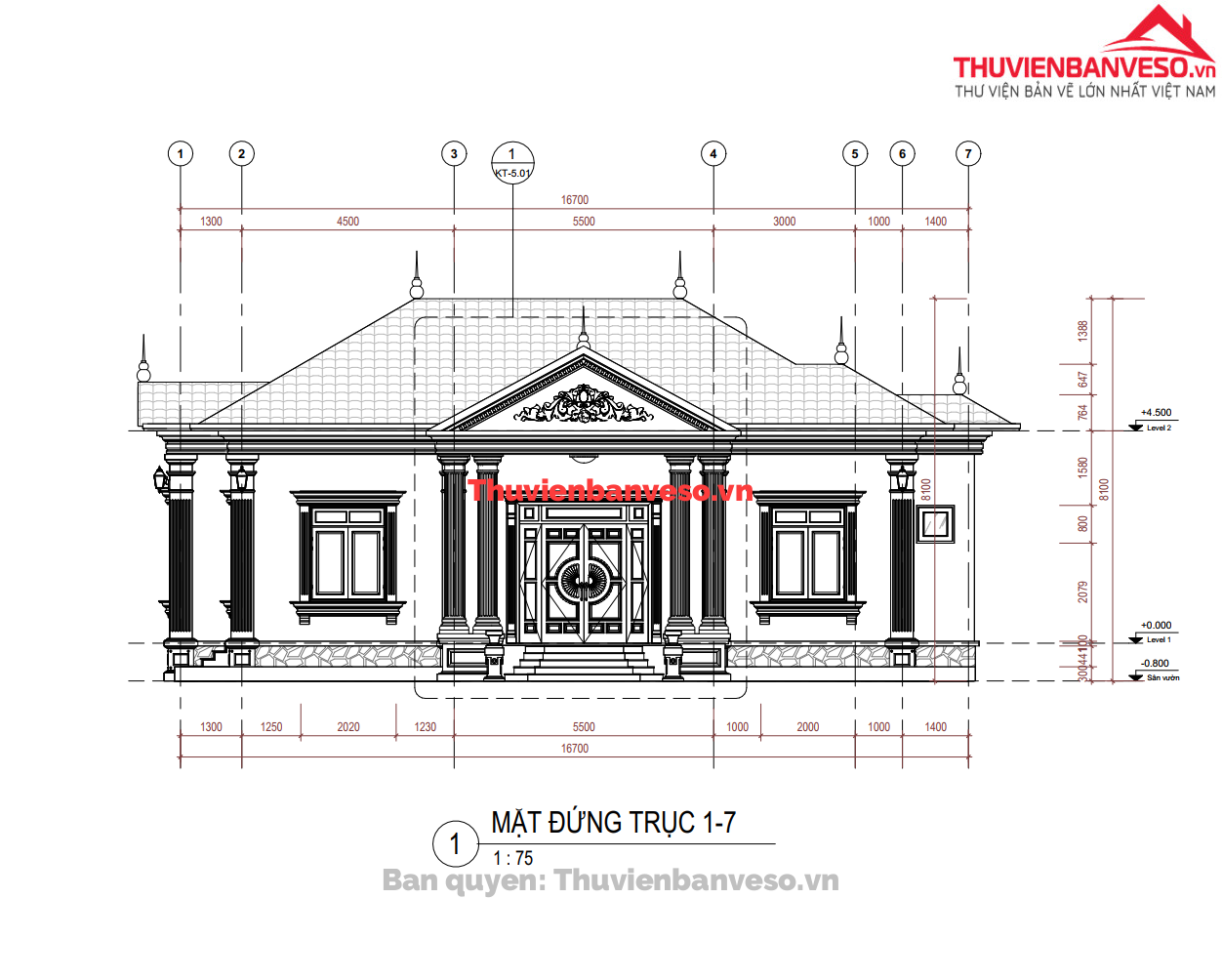 Hồ sơ thiết kế kiến trúc + phối cảnh Biệt thự vườn 1 tầng tân cổ điển