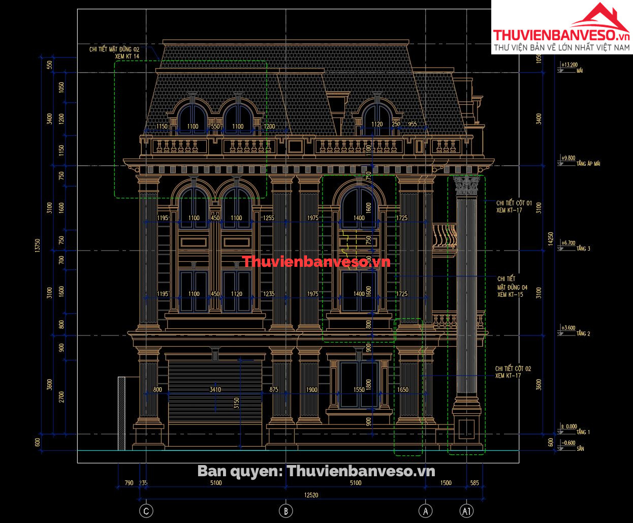 Bản vẽ nhà liền kề goldsilk complex 5x15m cao 5 tầng full kiến trúc, kết cấu (có phối cảnh)