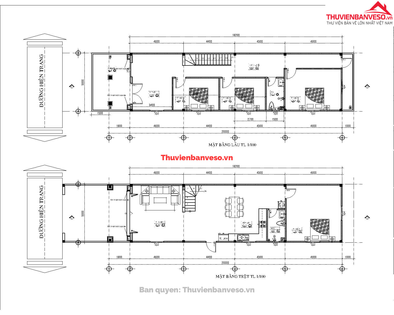 Full file cad bản ve nhà phố 2 tầng mái thái, kiến trúc tân cổ điển 5X20 đầy đủ và chi tiết, Full hồ