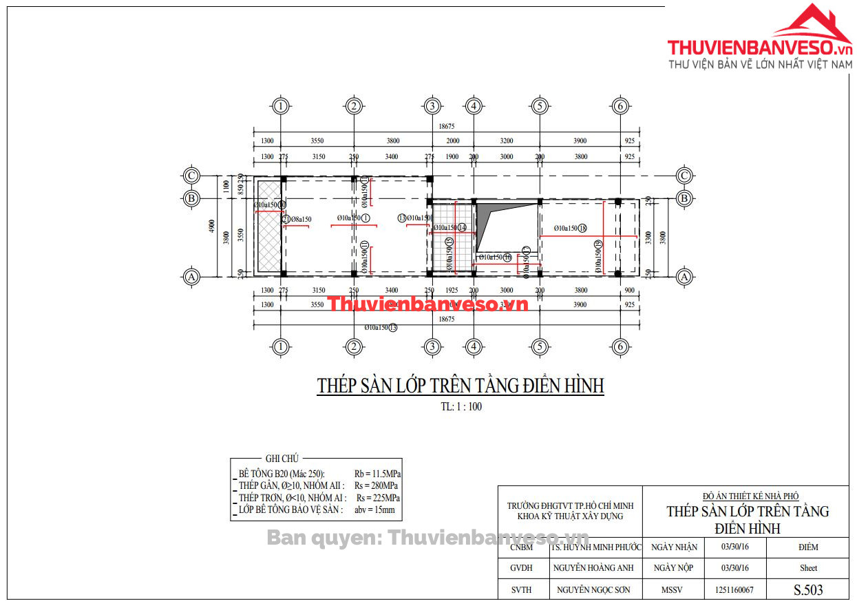 hồ sơ kết cấu nhà phố 4.9x18m, cao 3 tầng, đầy đủ bản vẽ kết cấu
