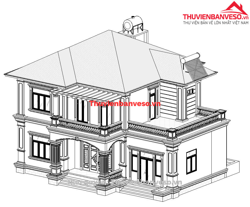 Hồ sơ thiết kế thi công biệt thự 2 tầng tân cổ điển