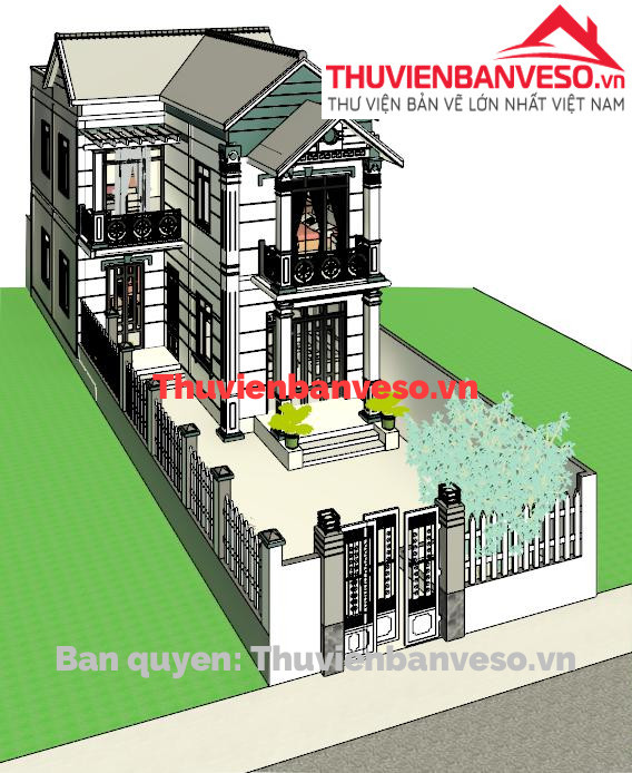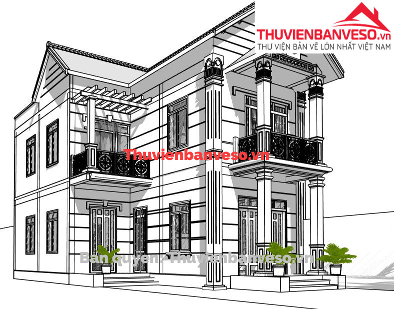 Hồ sơ thiết kế thi công biệt thự 2 tầng tân cổ điển bằng revit