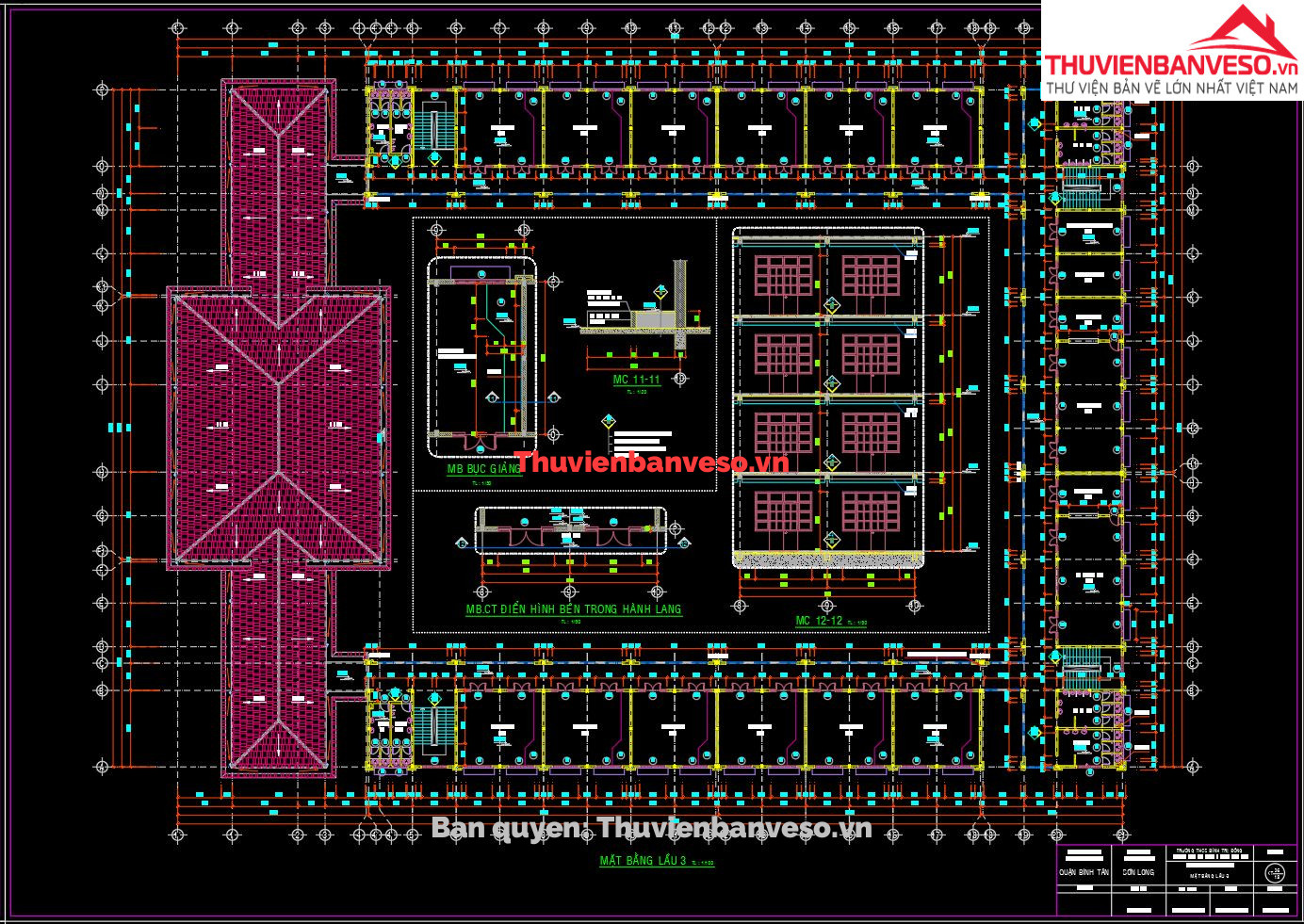 - Hồ sơ gồm đầy đủ file autocad về kiến trúc, kết cấu của ngôi trường