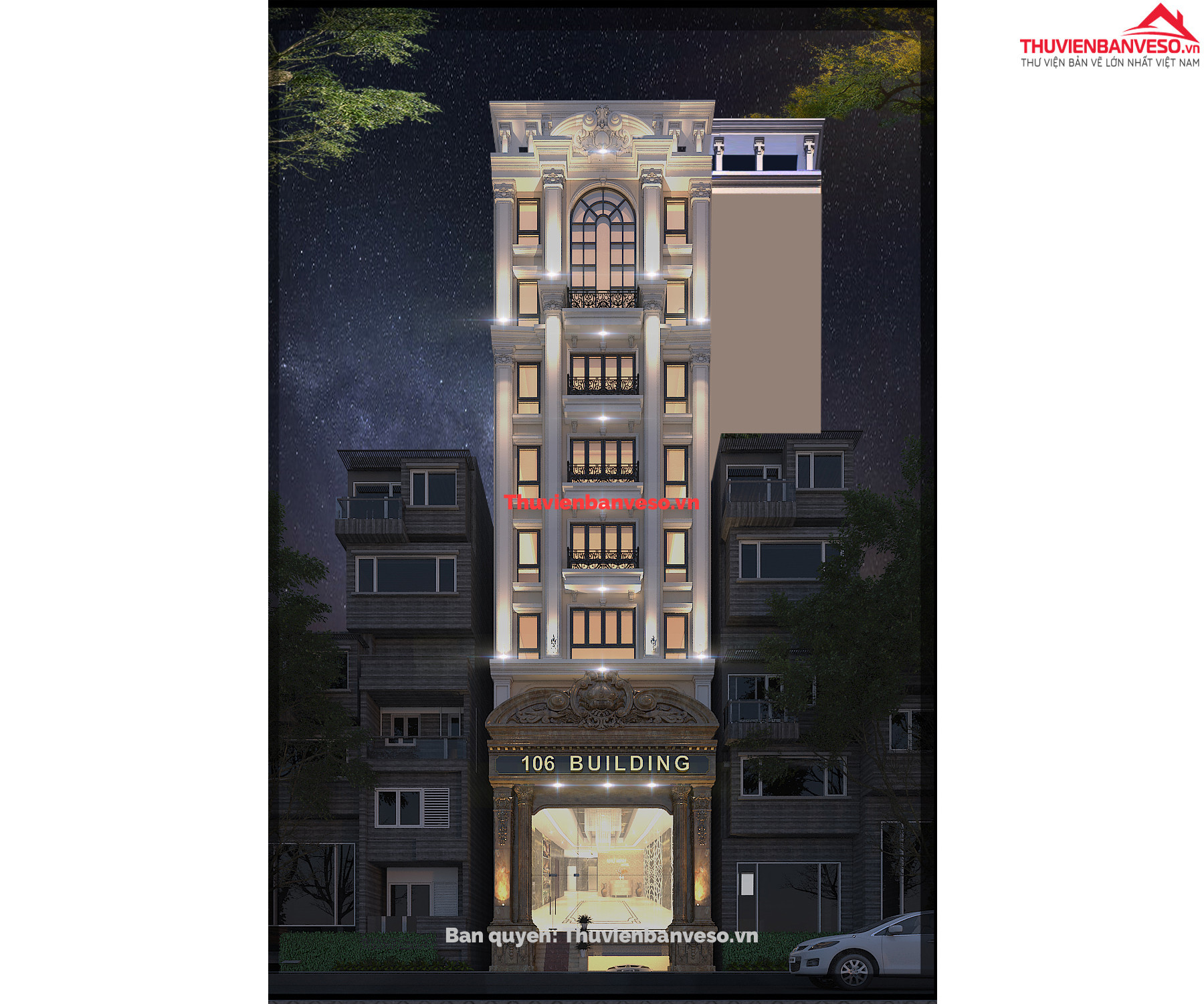 chia sẻ với các bạn bộ hstc khách sạn 9 tầng tân cổ điển kích thước 8.07x27m