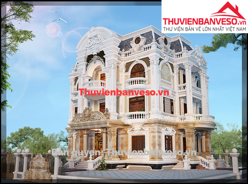 chia sẻ các bạn mẫu lâu đài 4 tầng kích thước:13.5x16m