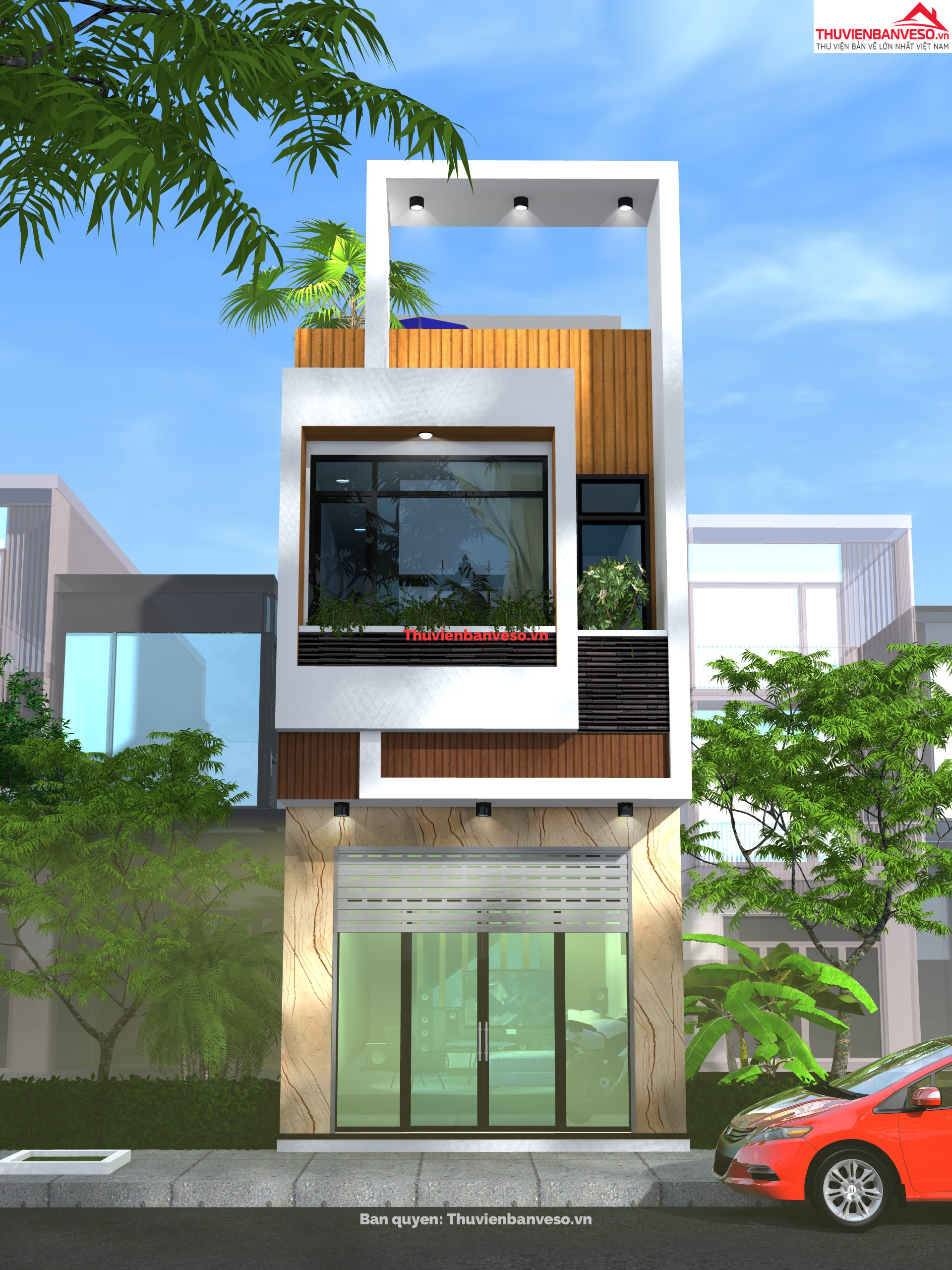 Nhà phố 2 tầng 1 tum, file revit và xpxd cad, mẫu nhà cho đất phân lô thông thường 4x15m2