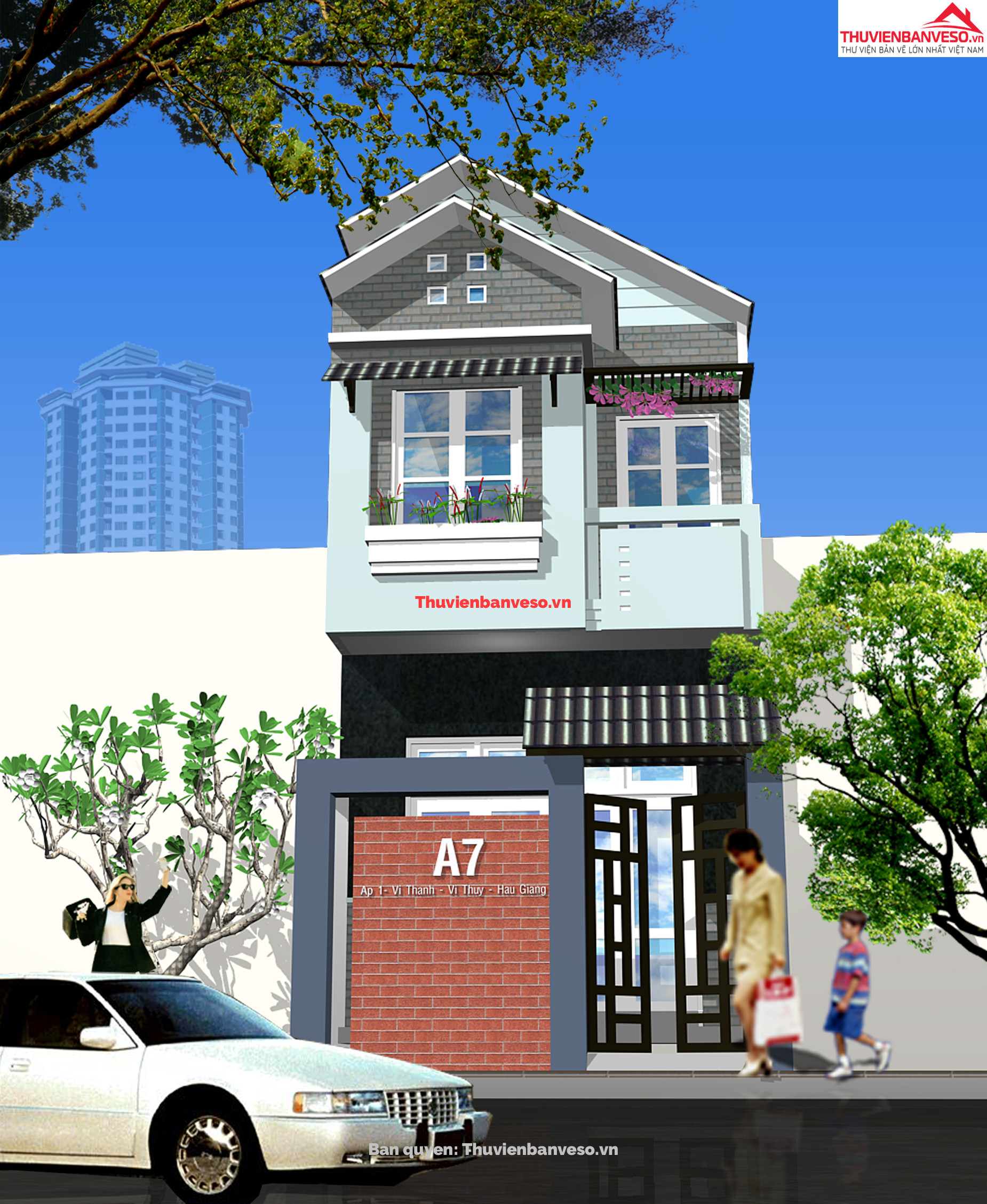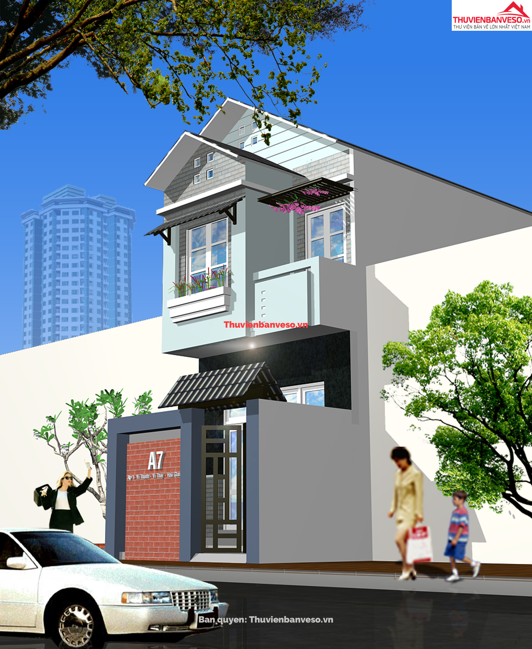 Bản vẽ nhà phố 3 tầng mái thái KT 6.5 x 17m full kiến trúc, dự toán