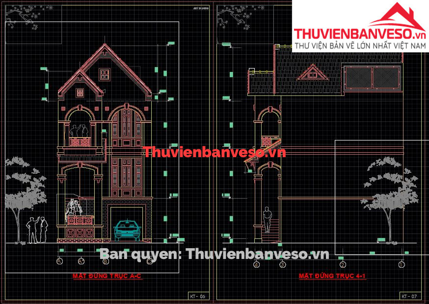 Bản vẽ nhà phố 3 tầng mái thái KT 6.5 x 17m full kiến trúc, dự toán
