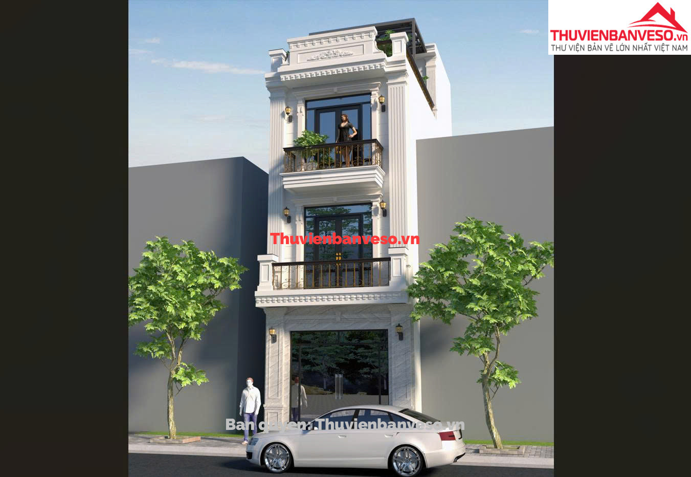 Nhà phố tân cổ điển 4 tầng kích thước 4.7x9.5m (Full KT, KC, ĐN, File sketchup)