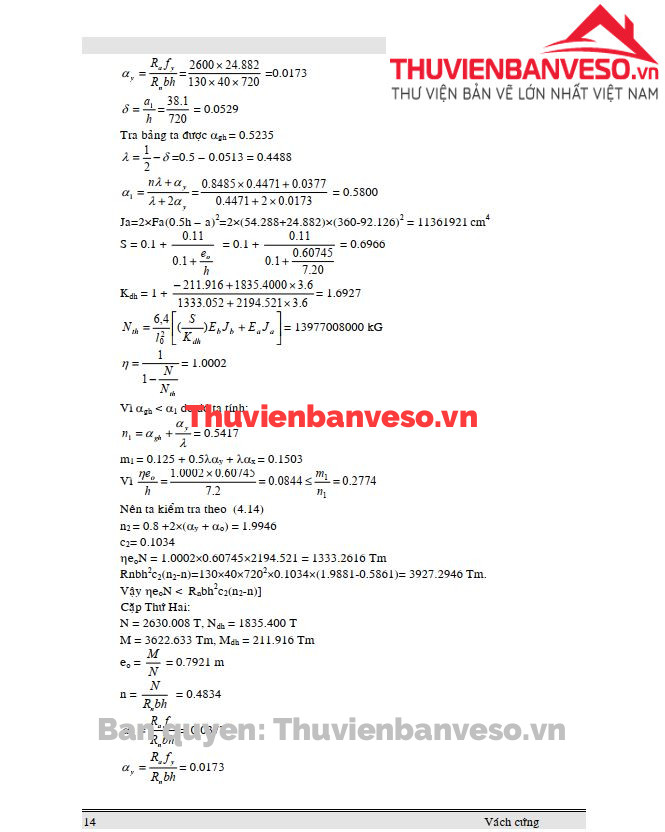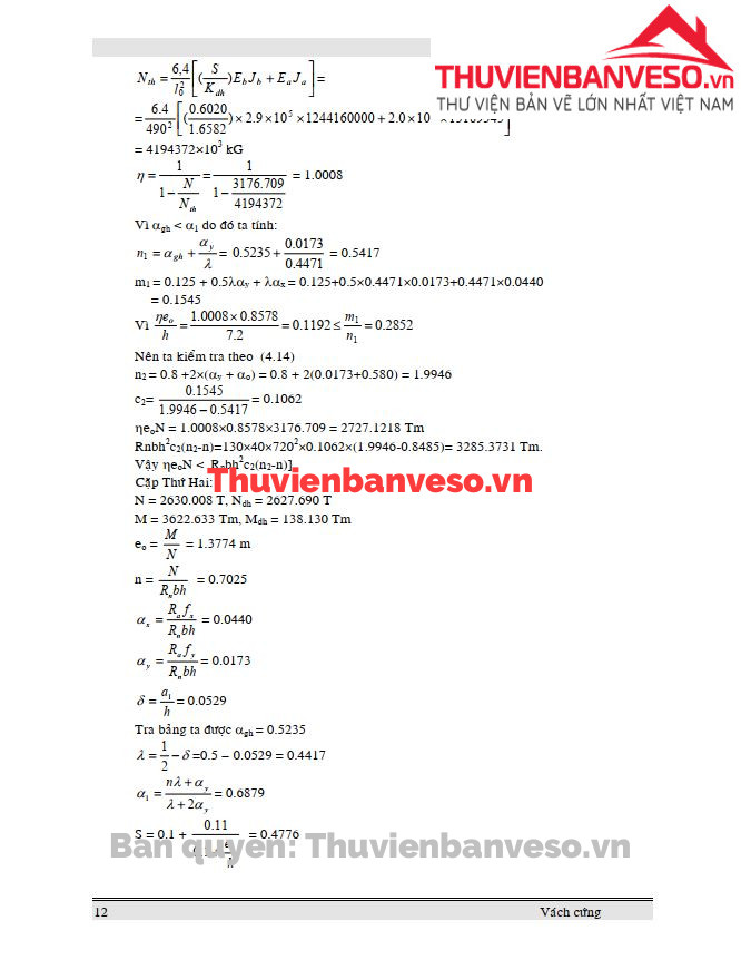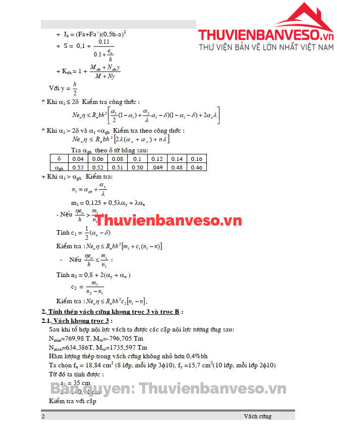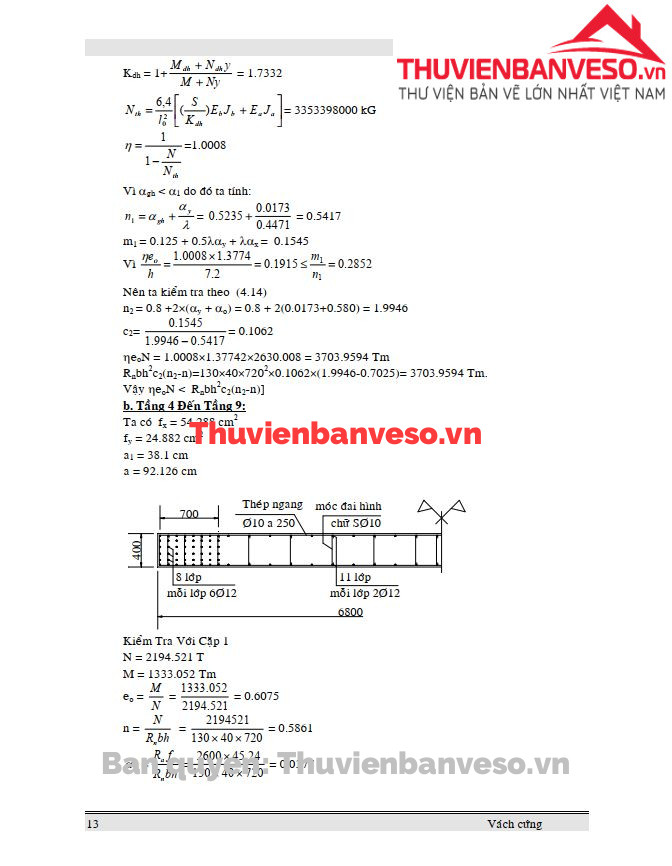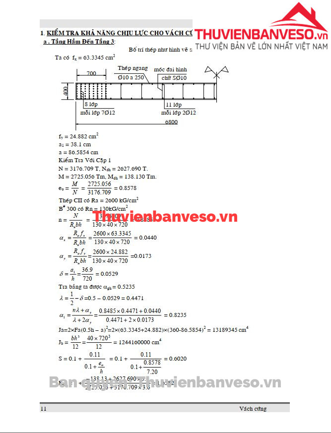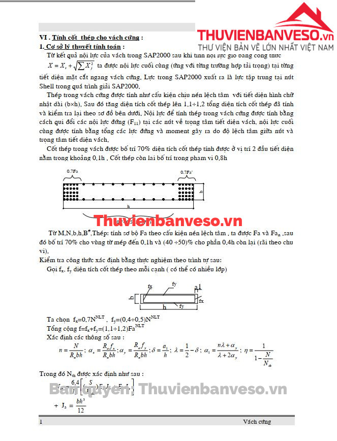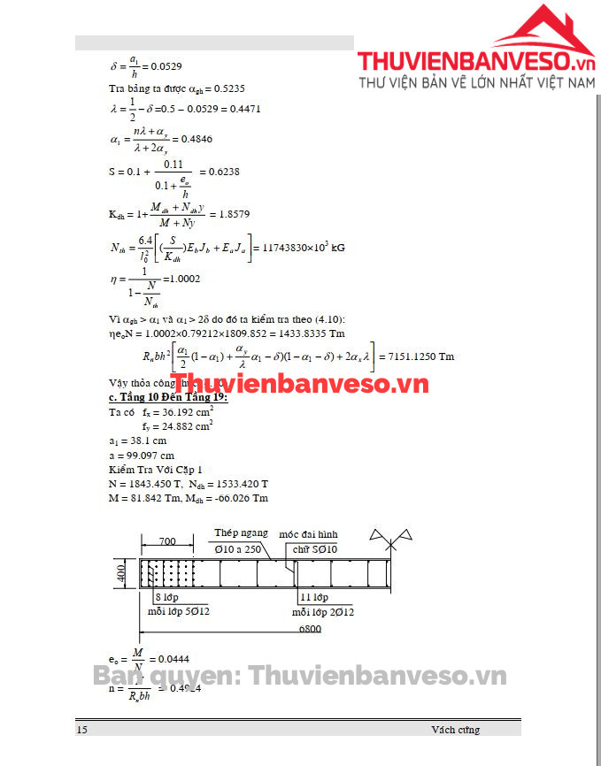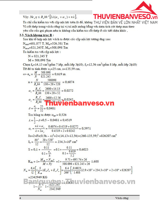 Thuyết minh tính toán cốt thép cho vách cứng